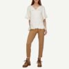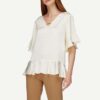Blusa Michael Kors de corte regular en tejido plano, sutiles círculos en relieve, holanes en bordes inferiores y abertura en pecho con detalle metalizado.