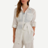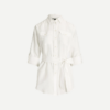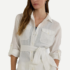 Inspirada en el estilo utilitario tradicional, esta camisa de lino ligero presenta una tapeta abotonada y bolsillos de parche con botones y está moldeada por un cinturón que define la cintura.