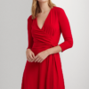 Ralph Lauren Mid Weight MJ-Dress: vestido de punto para mujer con fajín anudado que acentúa las curvas naturales de la cintura en rojo.